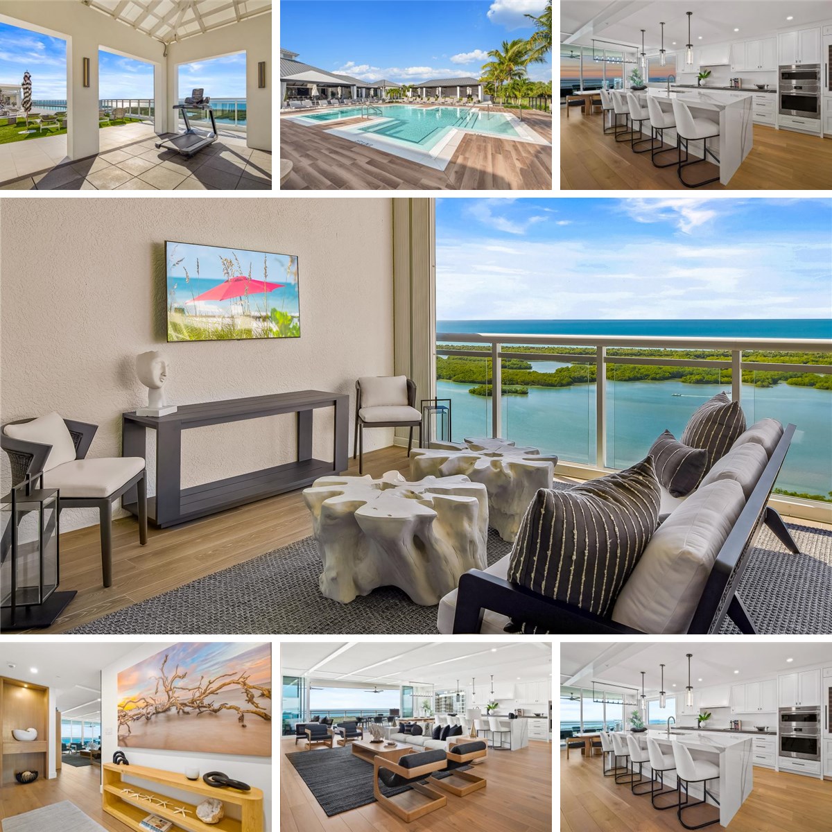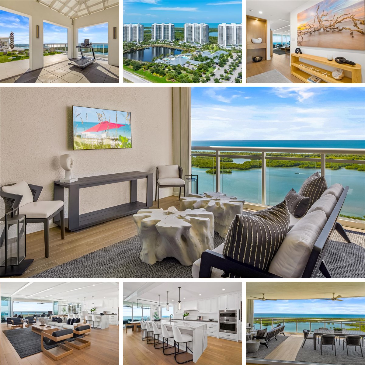 Wake up to breathtaking Gulf and bay views from this stunning, pet-friendly 3,722-square-foot, 22nd-floor luxury residence in Tower 300 at Kalea Bay, one of Naples, Floridas most prestigious resort communities. This newer-construction, furnished residence offers an exceptional coastal lifestyle with three bedrooms plus a den (optional fourth bedroom), three-and-a-half baths, and refined interiors by RH design. The open-concept living space flows seamlessly to a west-facing wraparound terrace with glass railings, showcasing panoramic sunsets, Gulf and Intracoastal boating views, sugar-white beaches, the sparkling skyline of North Naples, and golf views of Kinsale Golf Club just across the street. The chefs kitchen features Wolf and Sub-Zero appliances, quartz countertops, oversized island, wine cooler, refrigerator and freezer drawers, and a butlers pantry. The primary suite is a private retreat with water views, spa-style bath, dual vanities, soaking tub, walk-in shower, bidet, and a generous built-in closet. All bedrooms are en-suite with built-in closets, and the main living area features pocketing impact doors that open directly to the water views. Additional highlights include a large laundry room with built-in office, hardwood floors and custom millwork throughout, soaring ceilings, designer lighting, impact-resistant glass, solid-wood doors, private elevator entry, and accordion storm shutters on the lanai. Residents enjoy five-star tower amenities including rooftop pool and BBQ, fitness center, party room, and catering kitchen, along with full membership at The Club at Kalea Bay, featuring three resort-style pools, two poolside tiki huts, two on-site restaurants, a $14M state-of-the-art fitness and wellness center, tennis, pickleball, bocce, 12 exclusive guest cottages, dog park, beauty salon, kayak and paddleboard launch, business center, kids and teens centers, and a vibrant calendar of social events. The optional Beach Club offers indoor and outdoor beachfront dining, along with full chair, umbrella, towel, and food-and-beverage service on the beach. Guard-gated with 24/7 security and two assigned garage spaces on the upper lobby level, this residence represents the pinnacle of luxury coastal living in Naples, Florida.
