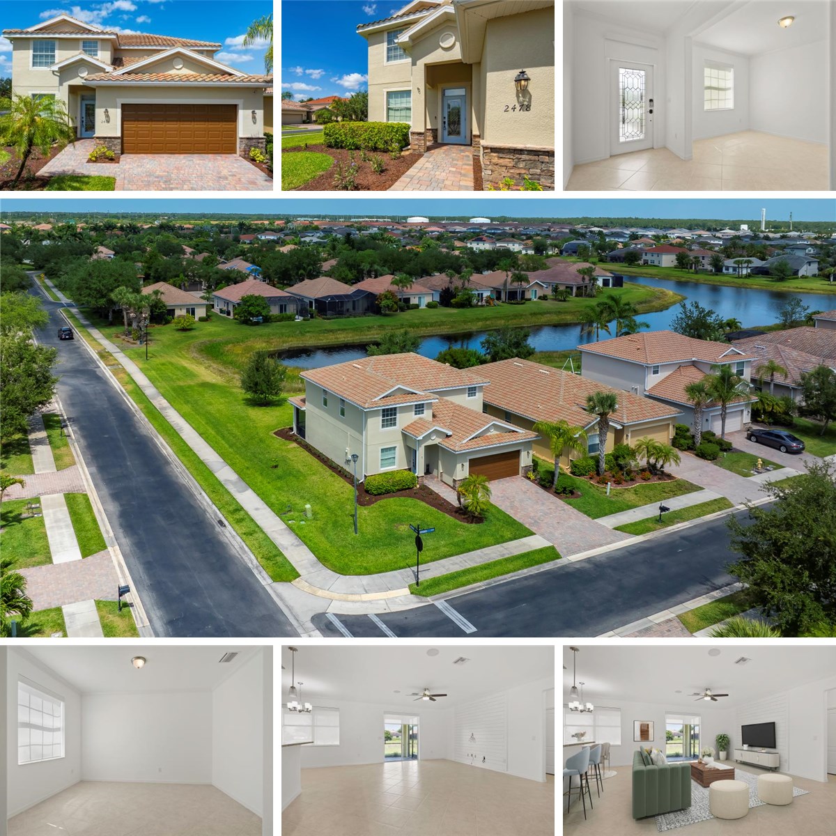 Large home,and one of the lowest price home of this size , in Orange Blossom Ranch !This exquisite Amalfi Model, nestled in the sought-after Orange Blossom Ranch, in Naples, Fl. has everything a family could desire—inside the gates and beyond. This 4 bedroom and three bathroom home has a den in addition to a bonus room! Built in 2014 and situated on a premium corner lot, this two-story home has been meticulously updated with fresh landscaping and new paint both inside and out. The modern kitchen features brand-new , and never used, stainless steel appliances, and the second floor boasts newly installed plush carpeting for added comfort.