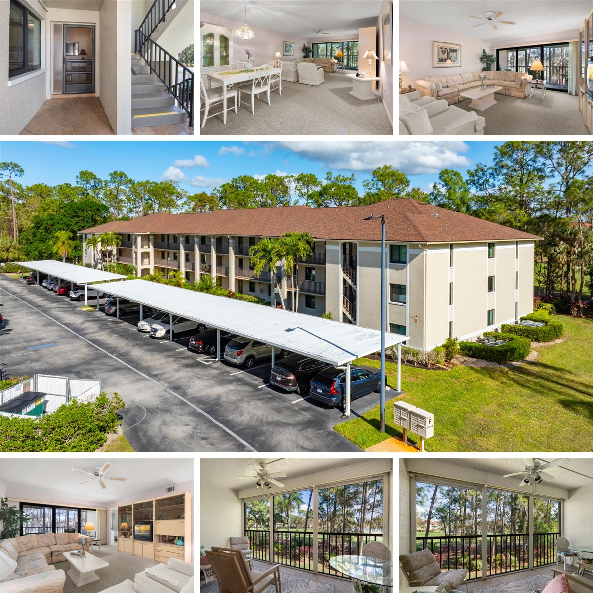 Bright and Spacious End-Unit Condo with Golf Course Views! Welcome to this second-floor end-unit condo, perfectly positioned to capture beautiful eastern views of the Royal Wood golf course. Located in close proximity to many things Naples offers, this residence offers an abundance of natural light, enhanced by new hurricane impact windows for peace of mind and energy efficiency. Step inside and be greeted by a spacious, open floor plan designed for both comfort and style. The end-unit provides extra windows to flood the living spaces with sunlight, creating a warm and inviting atmosphere. The wide lanai provides the perfect spot to enjoy your morning coffee while taking in serene golf course vistas. This charming condo features 3 bedrooms, 2 bathrooms, and thoughtfully designed living spaces ideal for both relaxation and entertaining. The kitchen offers ample storage and counter space, while the open living and dining areas make hosting a breeze. Located just minutes from Naples’ world-class beaches, shopping, dining, and entertainment, this condo offers the ideal blend of convenience and tranquility.
